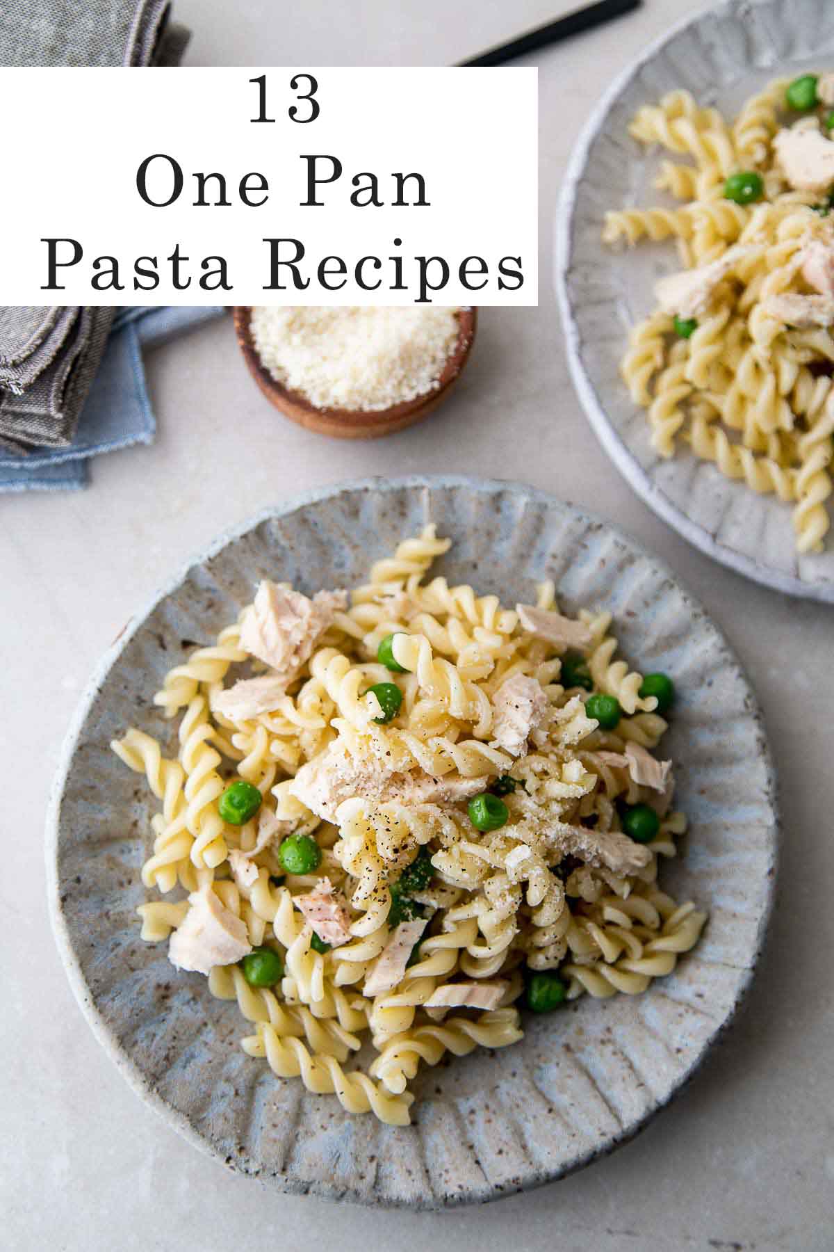 Kitas nuostabus ir lengvas vienos keptuvės makaronų receptas yra tuno makaronai. Tiesiog į išvirtus makaronus įpilkite tuno, citrinos, žirnelių ir šviežiai tarkuoto parmezano, kad greitas maistas būtų skanus ištisus metus!
