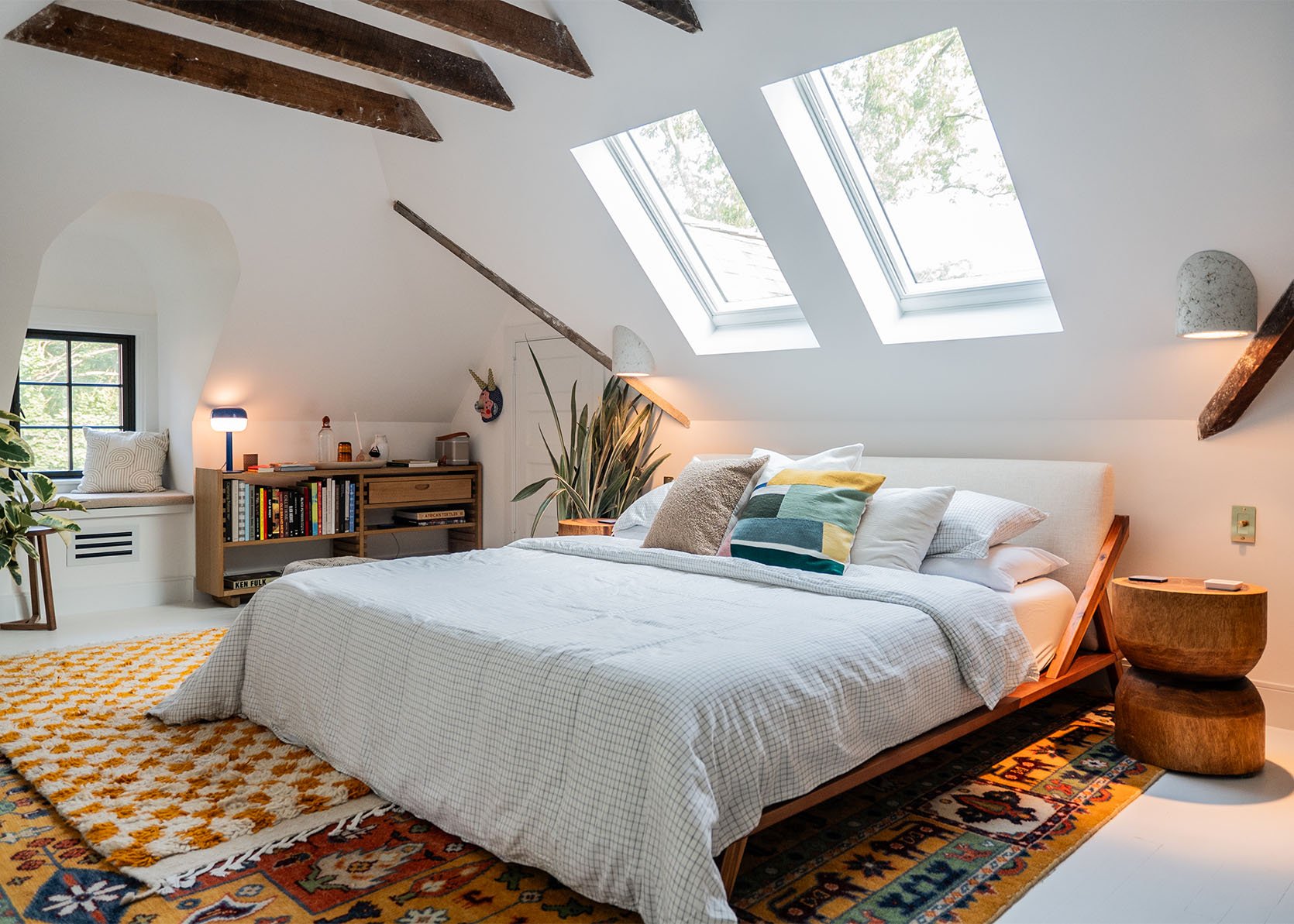 Atidarymo vaizdo kreditai: Hilton Carter dizainas ir nuotraukos | Iš: Bring The Light! Hilton Carter visiškai pakeitė savo palėpę į šviesų, augalams palankų svečių kambarį